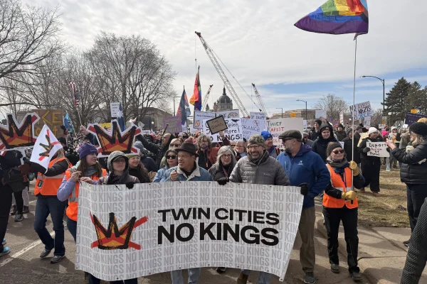 Em Minnesota, estado palco da maior repressão do serviço de imigração americano, o evento principal da manifestação No Kings reuniu uma multidão no Capitólio estadual, na cidade de Saint Paul. O evento conta com a participação dos cantores Bruce Springsteen, Tom Morello, Joen Baez e Maggie Rogers, além de políticos locais, incluindo o governador do estado, Tim Walz, e o senador Bernie Sanders, uma das principais lideranças do partido democrata. Em janeiro deste ano, duas pessoas foram mortas a tiros por agentes do ICE na cidade de Mineápolis, em Minnesota: Renee Good e Alex Pretti. Os dois eram cidadãos americanos de 37 anos, e tiveram as mortes registradas em vídeos, o que aumentou a repercussão dos casos. Milhares se reúnem em grandes cidades como São Francisco, Washington, Seattle, Boston e Albuquerque.