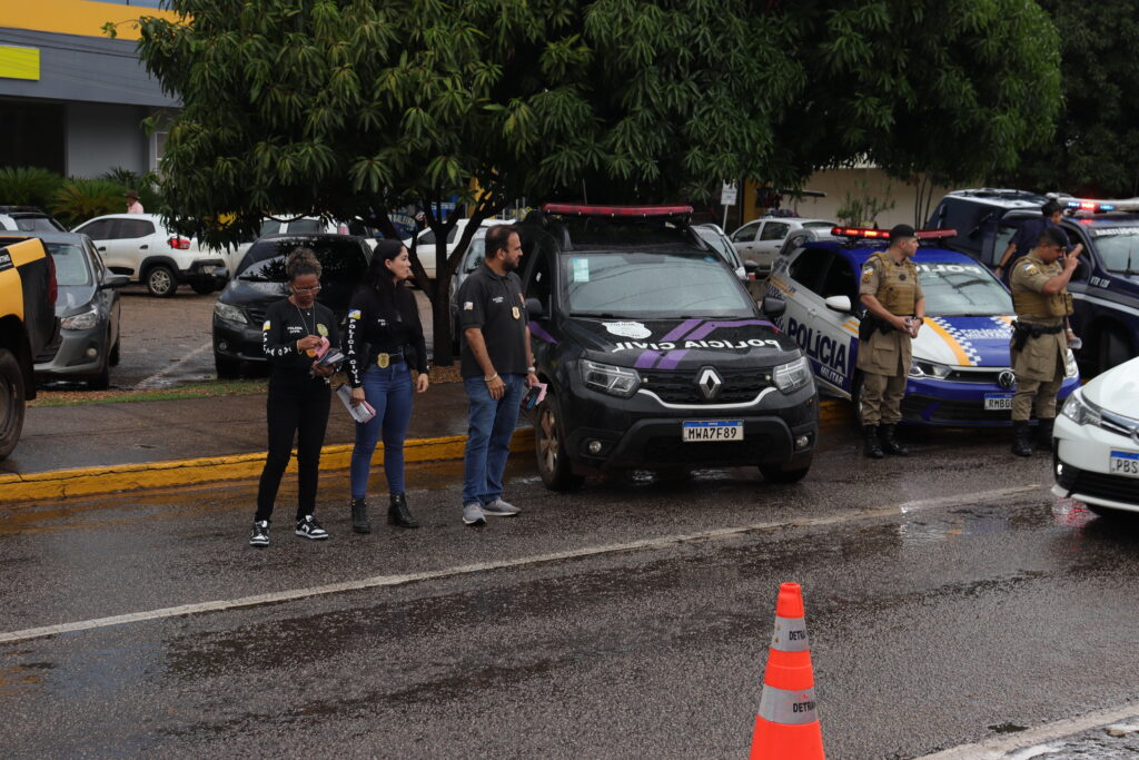 As forças de segurança do Tocantins realizaram, na manhã desta quinta-feira, 5, uma blitz educativa de conscientização contra a violência doméstica em Palmas, em alusão ao Dia D da Operação Mulher Segura. A ação integra a Operação Mulher Segura, iniciativa de âmbito nacional voltada ao enfrentamento qualificado à violência contra a mulher. A mobilização ocorreu em diferentes pontos da Capital e contou com a participação da Polícia Civil, Polícia Militar, Guarda Metropolitana de Palmas, Secretaria da Mulher, Casa da Mulher Brasileira, agentes municipais de trânsito e equipe de Educação para o Trânsito. A ação teve como objetivo sensibilizar a população sobre o enfrentamento à violência doméstica e familiar contra a mulher e reforçar a importância do fortalecimento da rede de proteção. Durante a blitz, foram realizadas abordagens educativas a condutores e pedestres, com distribuição de materiais informativos e orientações sobre os serviços de apoio às vítimas. A delegada titular da 1ª Delegacia Especializada de Atendimento à Mulher de Palmas (1ª DEAM – Palmas), Fernanda de Siqueira Correia, destaca que ações educativas são fundamentais para ampliar o alcance das políticas de enfrentamento à violência de gênero. “Essas mobilizações reforçam a presença das instituições de segurança pública junto à comunidade e contribuem para conscientizar a população sobre a importância de denunciar situações de violência. O enfrentamento à violência contra a mulher exige atuação integrada e participação de toda a sociedade”, afirma. O diretor do Sistema Integrado de Operações (SIOP), delegado Anderson Casé, ressaltou a importância da mobilização conjunta das forças de segurança e instituições parceiras. “A realização de ações integradas fortalece o trabalho preventivo e amplia o alcance das orientações à população. Quando as instituições atuam de forma articulada, conseguimos reforçar a proteção às mulheres e incentivar que situações de violência sejam denunciadas”, destaca.